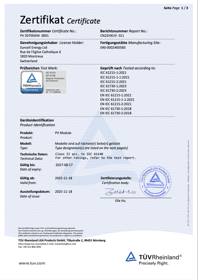 Limited warranty for Suncell BIPV modules